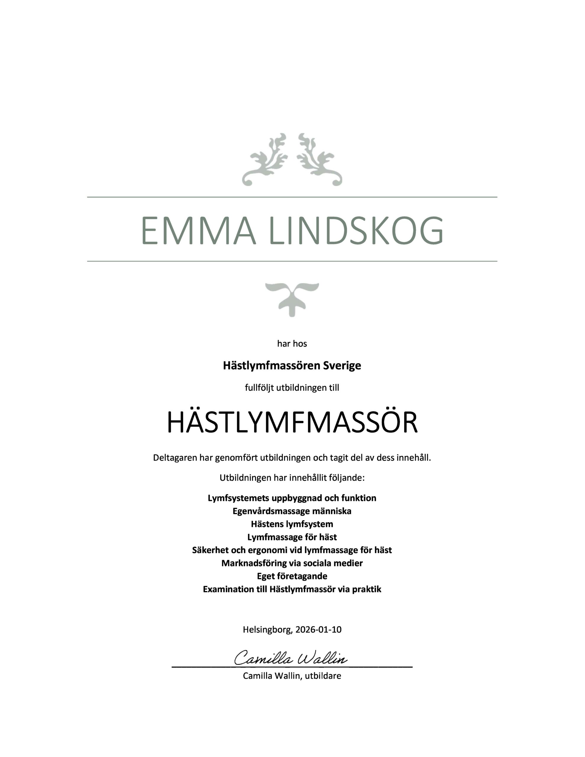 Det har varit en lång resa, med många svängar fram och tillbaka. Idag har jag landat i mig själv och vågar fullt ut lita på min känsla – min förmåga att läsa av hästen, tolka dess signaler och förstå vad den försöker berätta. Den förståelsen är, för mig, en förutsättning för att kunna ge lymfmassage på ett korrekt, tryggt och harmoniskt sätt.